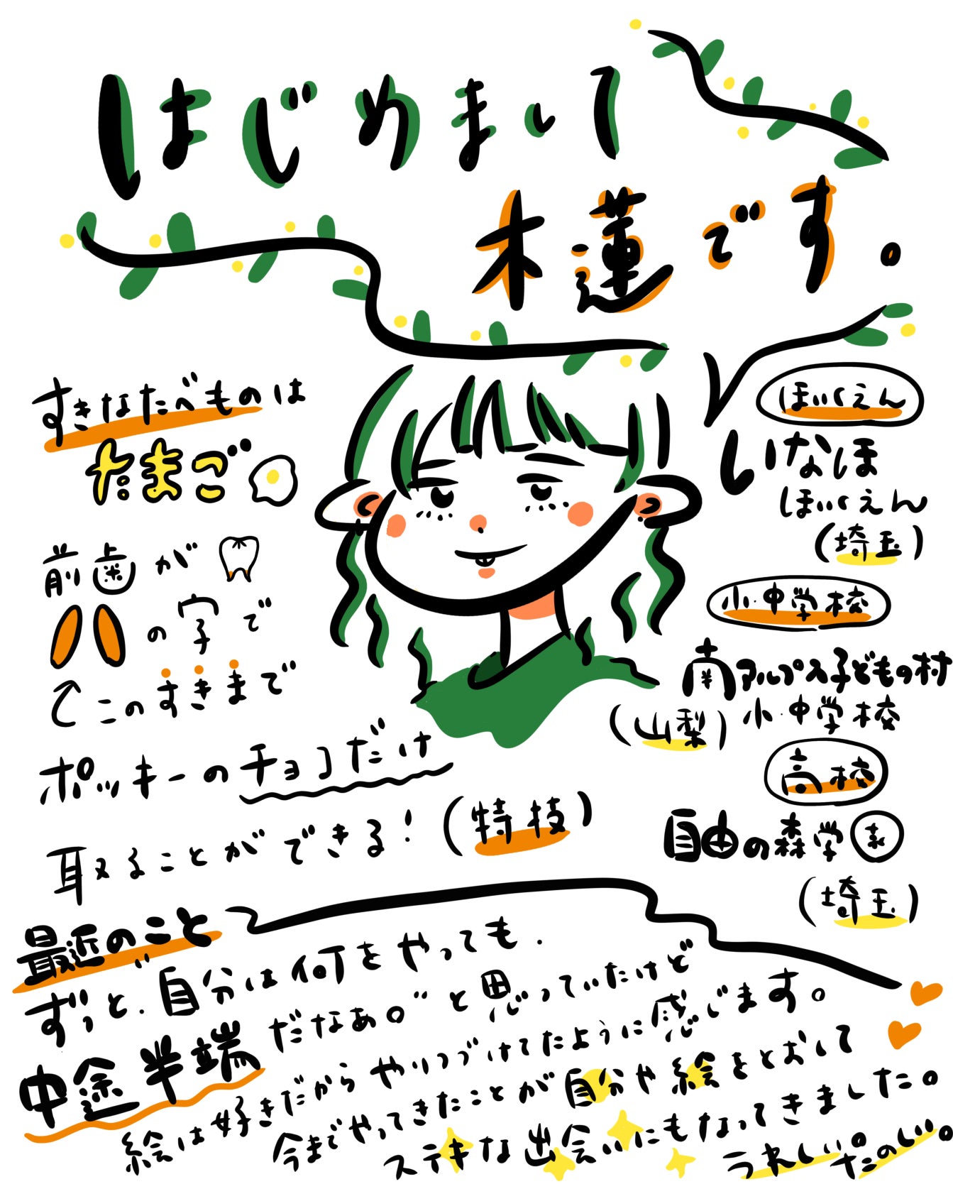 独特の感性や表現力があります。普段絵は趣味で描く程度ですが、このプロジェクトに支援が集まったら、無理のない形で才能を発揮できると思っています。木蓮は、「夢見る小学生」の舞台にもなっている「きのくに子どもの村」、そして「自由の森学園」の卒業生です。