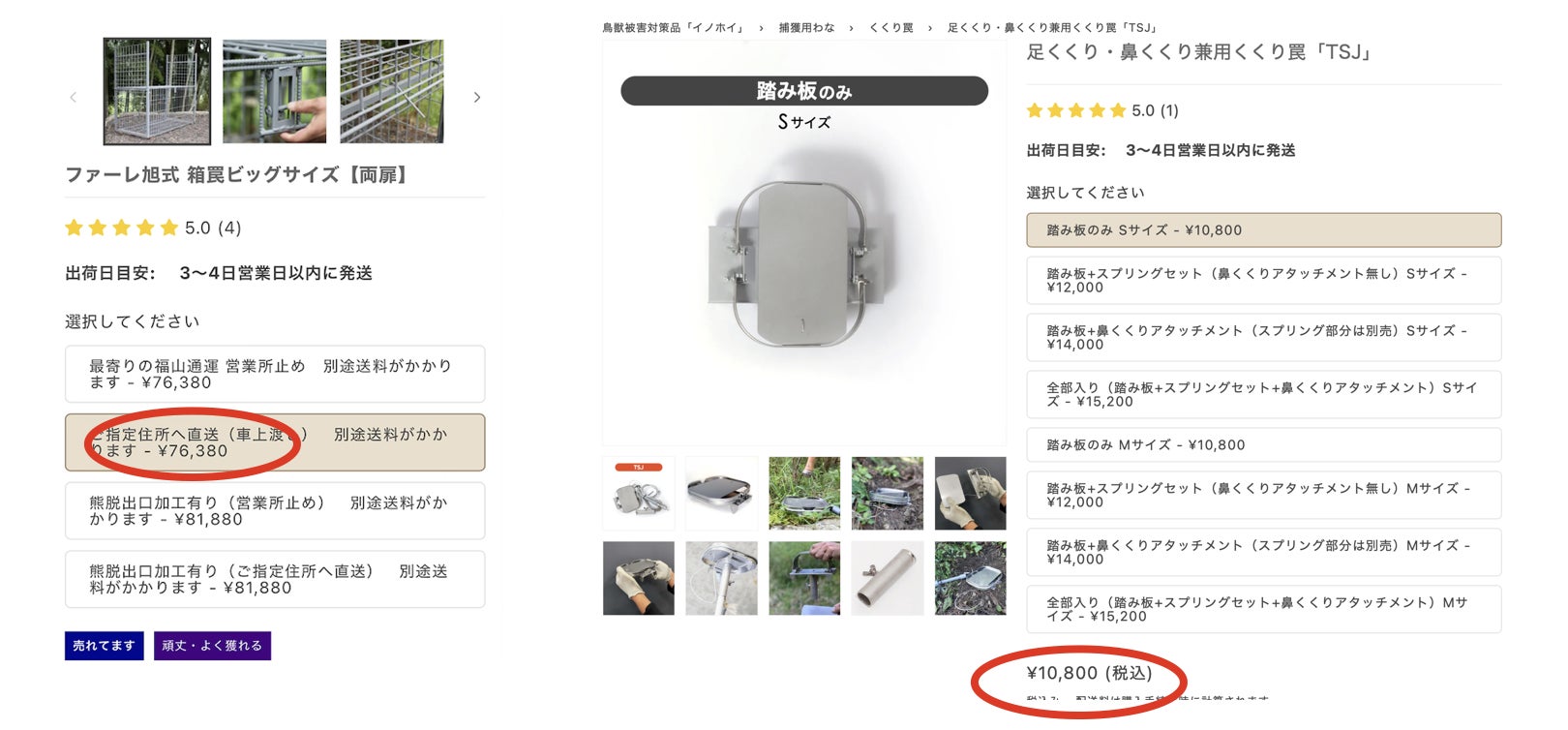 商品名 足くくり・鼻くくり兼用くくり罠「TSJ」¥10,800 +送料