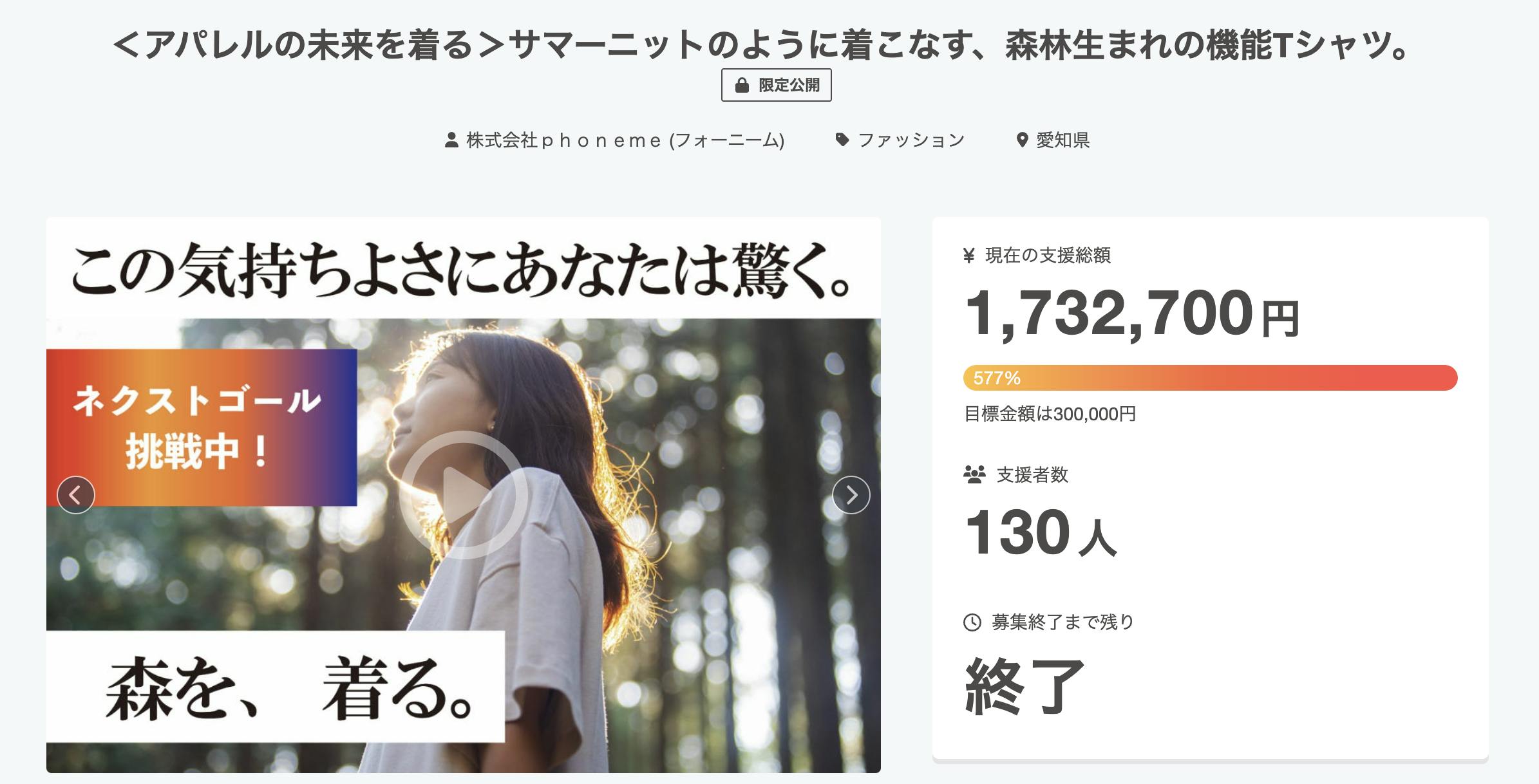 2025/09/08 20:44ご支援いただいた皆様へこの度は、クラウドファンディング「木糸Tシャツ」プロジェクトに温かい応援をいただき、本当にありがとうございました。公開直後、最初のご支援が届いた瞬間の喜びは今でも忘れられません。それからわずか2時間で目標を達成し、気がつけば想像を超える数の方々に背中を押していただきました。皆さま一人ひとりの想いが積み重なり、森から生まれた小さな挑戦が、ここまで大きな共鳴となったことに心から感謝しています。「森を纏う」という言葉は、単なるコンセプトではなく、皆さまと一緒に創り上げた物語そのものです。この一枚のTシャツには、森を守りたいという願い、循環する未来をつなぎたいという想い、そして応援してくださった皆さまの声が織り込まれています。リターンの品は今月末から順次発送を予定しています。お手元に届くその日、ぜひ袖を通していただき、森と、そしてこの挑戦の物語を感じていただけたら幸いです。改めて、心よりの御礼を申し上げます。ここで終わるのではなく、ここからまた新しい挑戦が始まります。引き続きご指導、ご鞭撻のほど何卒宜しくお願い致します。株式会社phoneme 代表取締役 丸岡武史 もっと見るYahoo!ニュースや日経新聞でも取り上げて頂きました。