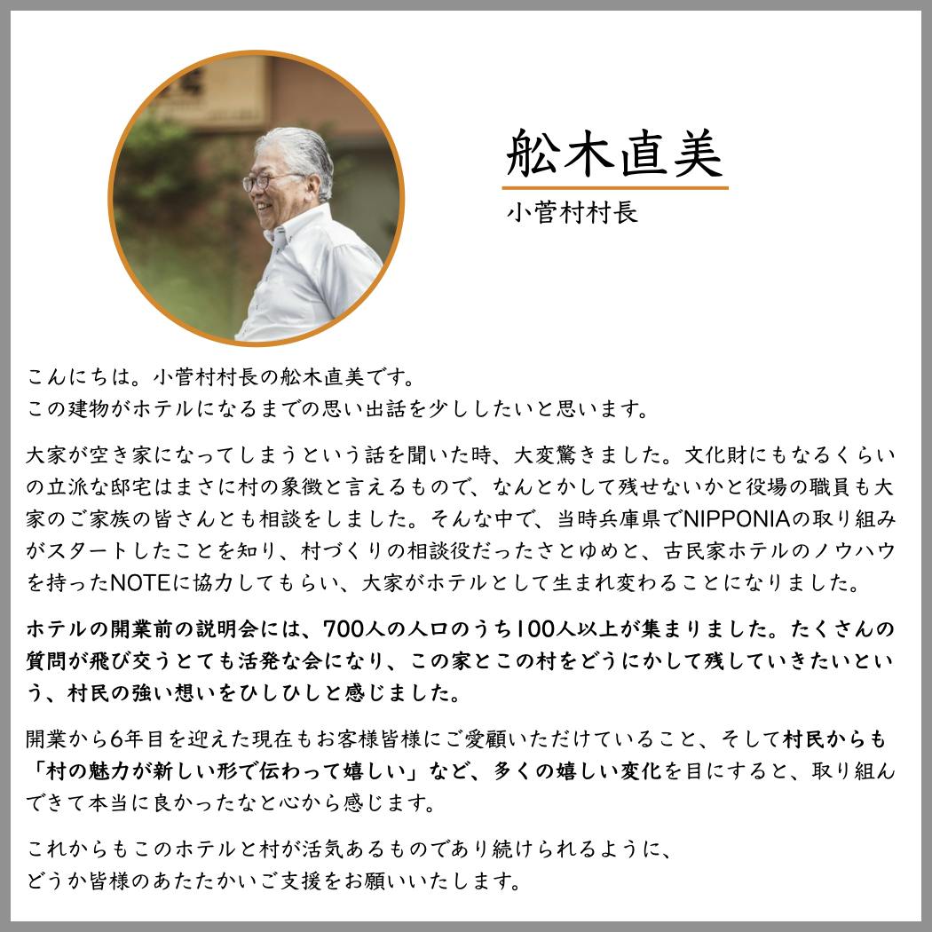 最後までご覧いただきありがとうございました。私の想いを書き連ねたり村人一人一人の想いに改めて触れることで、私はやはりこの土地が大好きで、この人たちのために生きていきたい、この土地でお客様をお迎えし続けたいと想いを新たにする機会となりました。