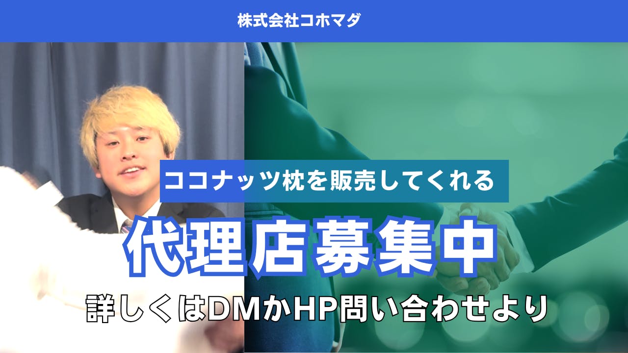 また、一緒に「ココナッツ枕」を販売してくれる代理店も募集いたします。詳細はDMかHPの問い合わせからお願いいたします!