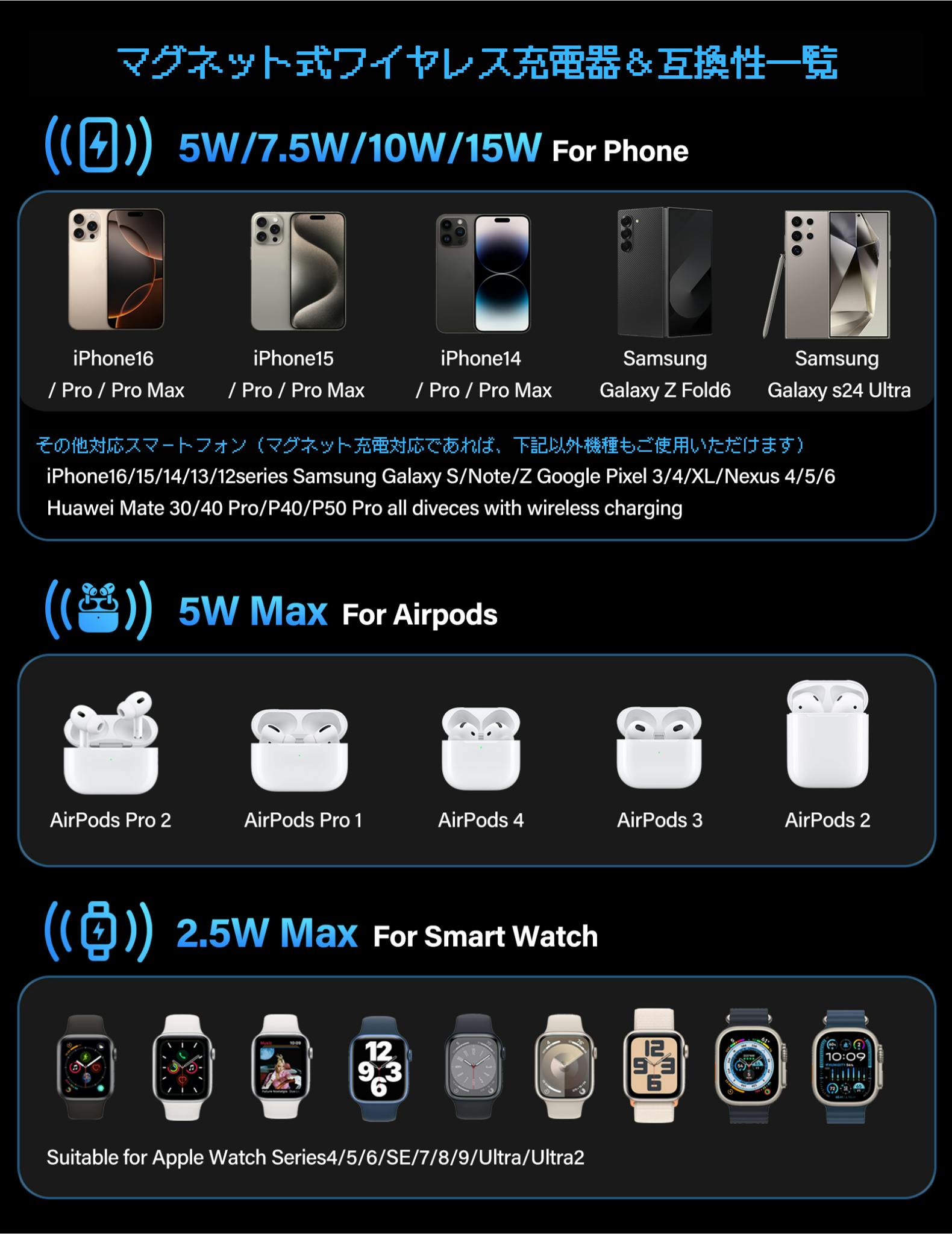 スマートフォンワイヤレス充電 / ワイヤレスイヤホン充電 / スマートウォッチ充電