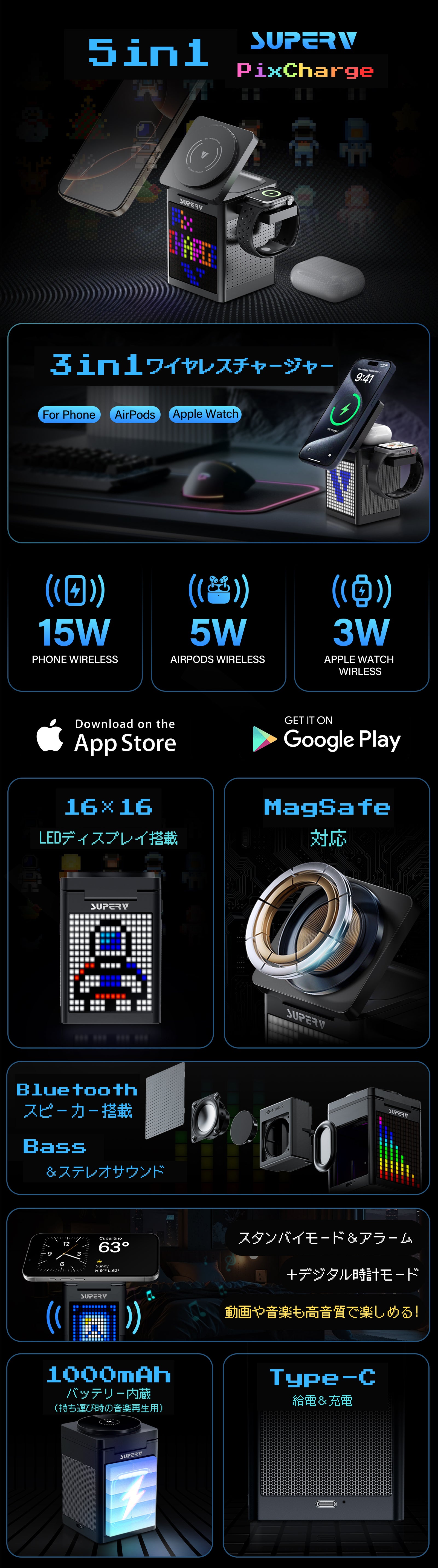 【充電器×ドット絵】5in1 ワイヤレス充電器&スピーカー!