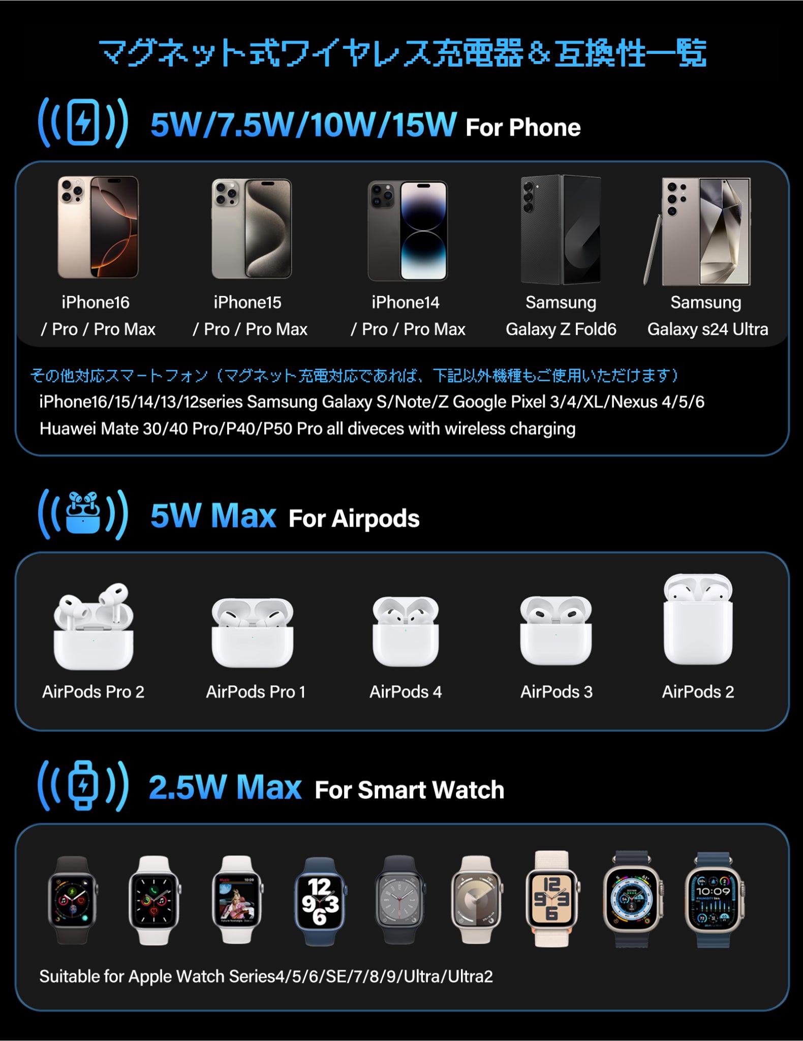 スマートフォンワイヤレス充電 / ワイヤレスイヤホン充電 / スマートウォッチ充電