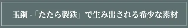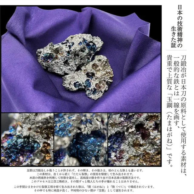 玉鋼は、日本の刀鍛冶が古来から伝える「たたら製鉄」の技術を用いて生み出される、