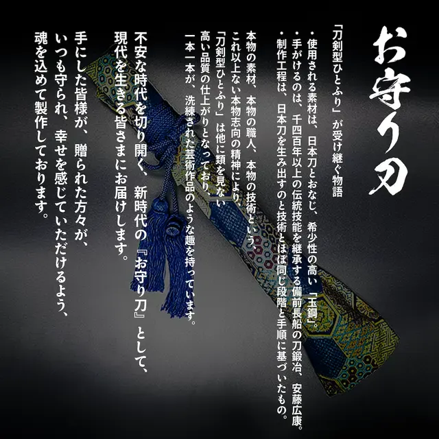 この「御守型ひとふり」を通じて、日本の伝統と職人の魂を感じ、日々の暮らしが少しでも豊かに彩られることを願っています。