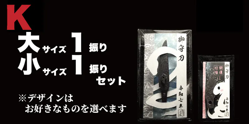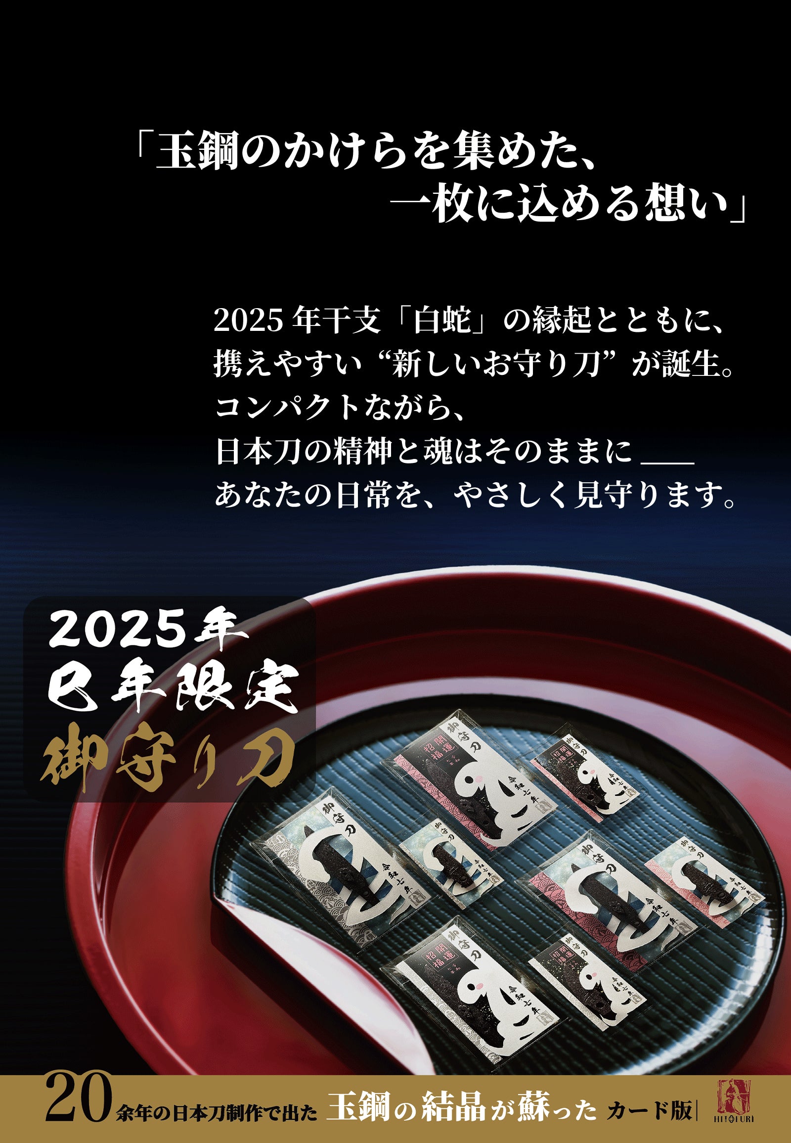 - “本格玉鋼製の御守型ひとふり” + “カード版 大サイズ”の2点セット。