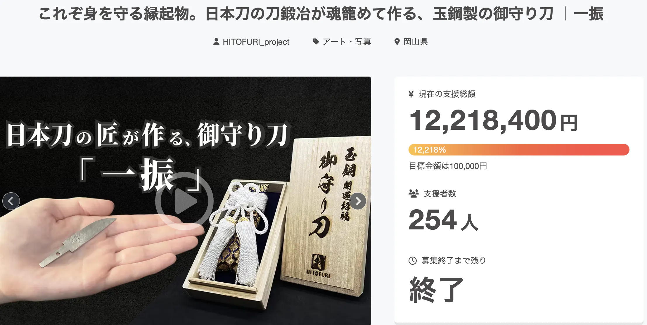 HITOFURIプロジェクトの玉鋼製お守り刀は、まさにその願いを形にしました。
