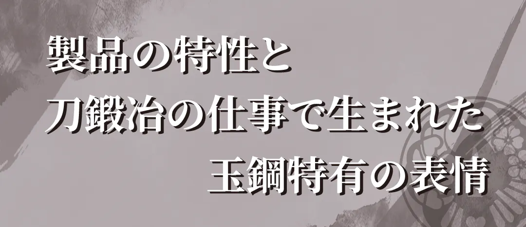 玉鋼の風合い、鍛冶の際に生まれる痕跡など、一つひとつ異なる個性は手仕事ならではの味わいです。