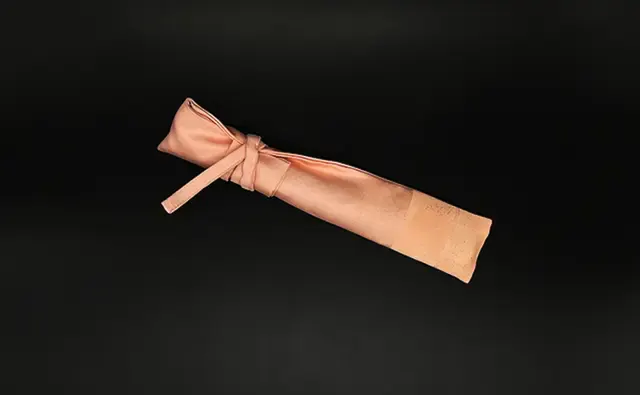 儚くも美しい“桜”をあしらった西陣織は、見るだけで心がぱっと明るくなる可憐な仕上がり。ふんわりとしたピンクがさりげなく可愛い印象を与え、組紐(白orピンク)を選べるのもポイント。季節感あふれる刀袋に、希少素材「玉鋼」で鍛錬したミニ刀が包まれる特別感をぜひ体感してください。