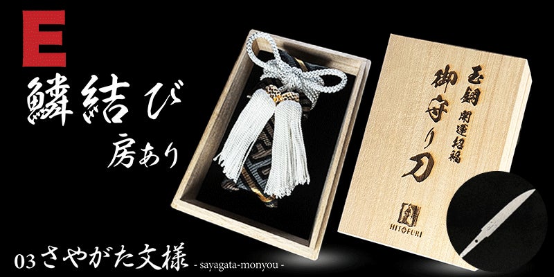 [E] さやがたブラック・鱗結び(房あり)/玉鋼製「御守型ひとふり」
