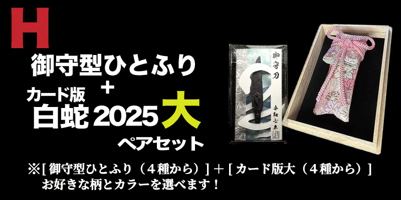 [H] 御守型ひとふり(薄桜 or さやがたブラック/房なし)+ カード版 大(2025年 白蛇)セット
