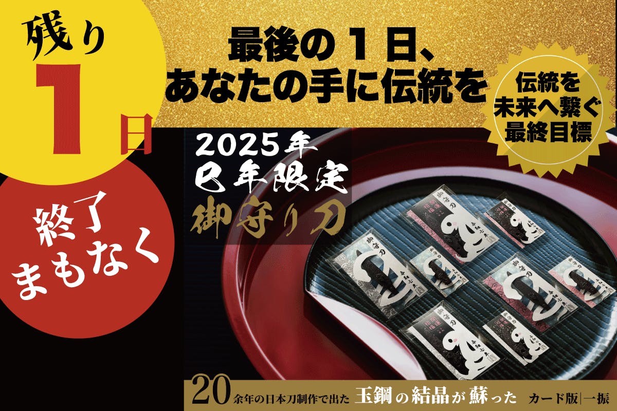 みなさま、こんにちは。HITOFURIプロジェクトです。ついに本日、【4月30日(水)23:59】で、クラウドファンディングが終了となります。この2ヶ月弱、本当にたくさんの応援、そして温かいお言葉をありがとうございました。「一人でも多くの方に、日本刀の魂と春の訪れを届けたい」そんな想いで、ひと振りひと振り、心を込めて準備してまいりました。この小さなお守りには、職人たちの伝統技術への誇り、何百年も受け継がれてきた技と心、そして、あなた自身を守る祈りが込められています。もし、まだ少しでも気になっている方がいらっしゃいましたら、どうか、この機会をお見逃しなく。あなたのもとへ届く「ひとふり」が、未来を支える小さな力になりますように。▼プロジェクトページはこちらhttps://camp-fire.jp/projects/825856/view最後の最後まで、どうぞよろしくお願いいたします!