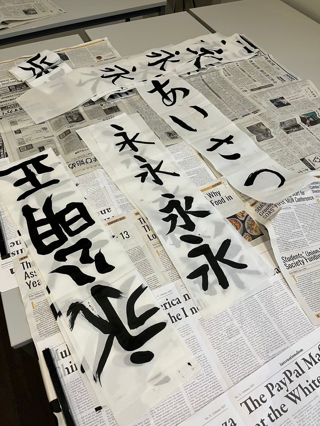↓実際にロンドン大学で書き初めワークショップをやった際の様子です。