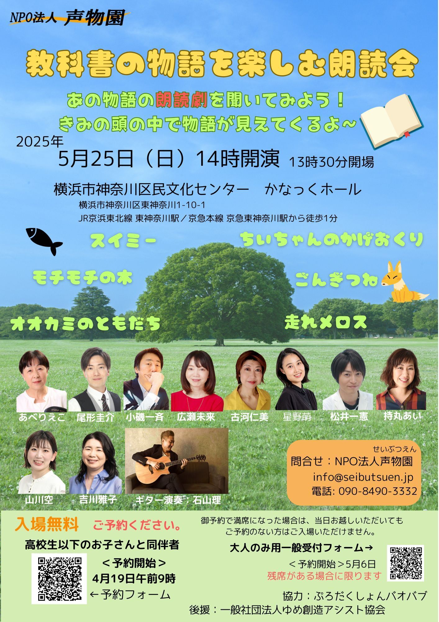 いよいよ、朗読会開催が近くなってきました。おかげさまであちこちで注目をしていただいておりますが、まだお席はございます。せっかくの機会ですので、まずは多くの方に見ていただけると嬉しいです。読書をしようというきっかけになることと思いますし、物語を聞いてみようという気にもなるかと思います。まだご予約もお待ちしています。以下でご予約ください。予約サイト