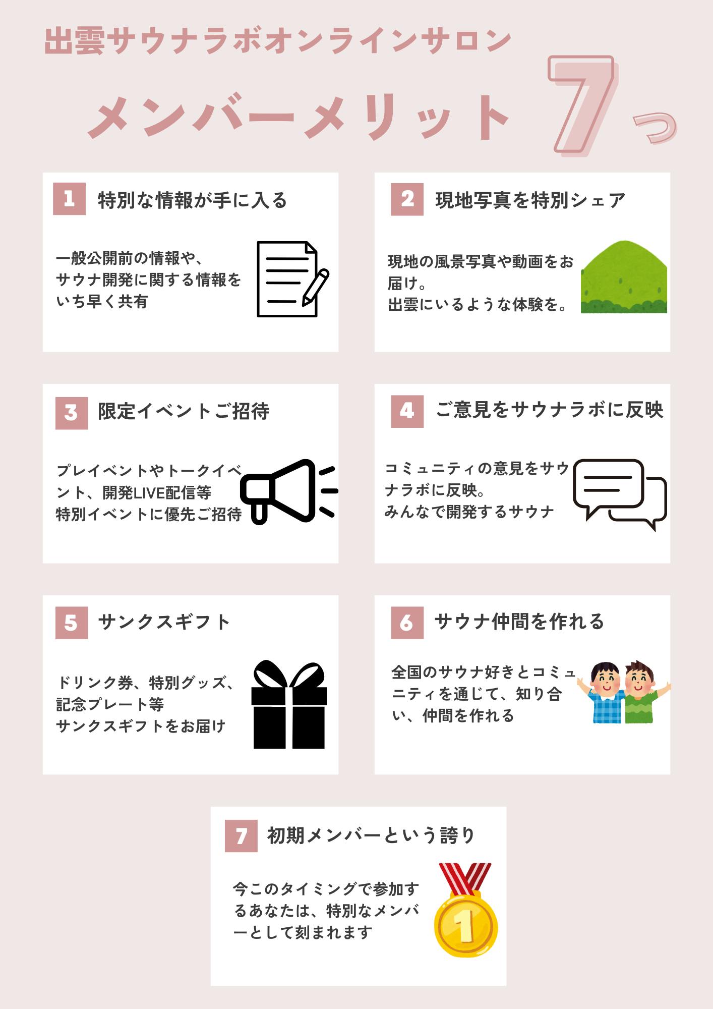 <<出雲サウナラボ・オンラインサロン メンバーのメリット>>