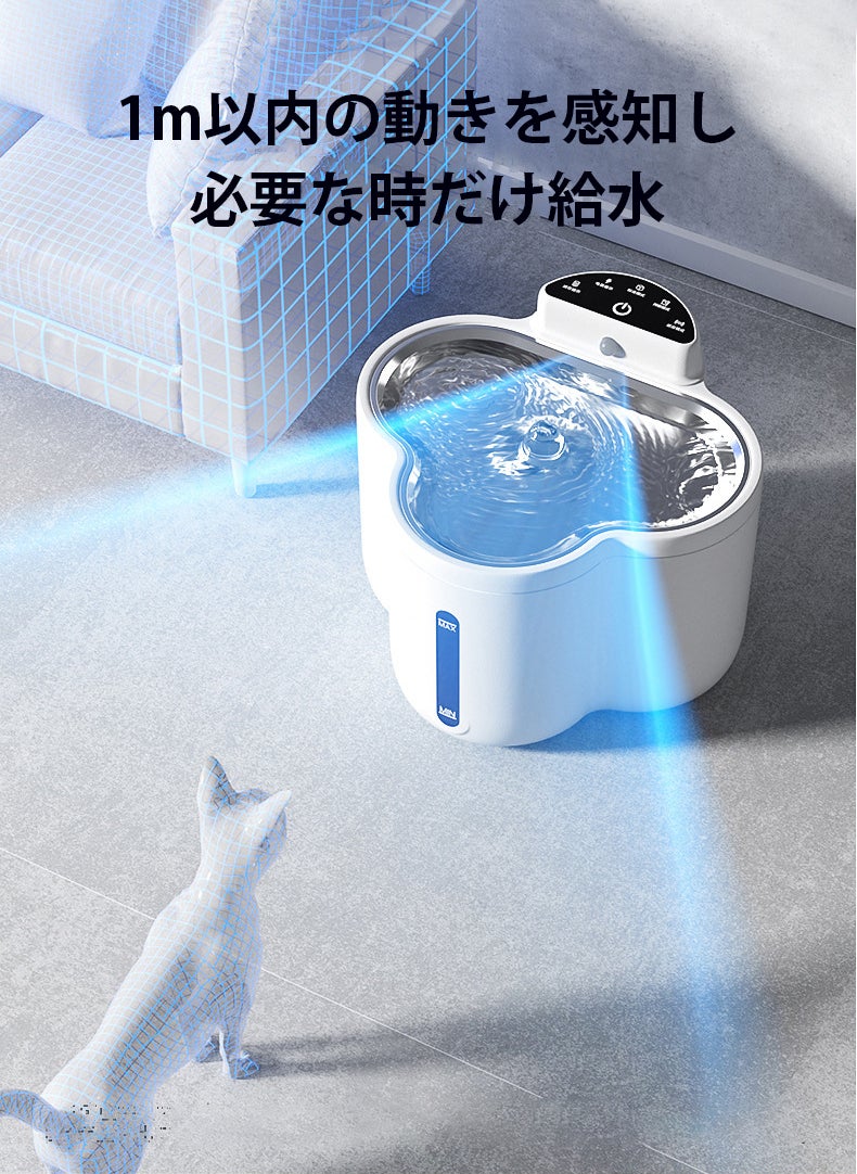 1メートル以内の動きを感知して必要なときだけ給水するため、飼い主が忙しい日でも給水の手間を省きながら、水の無駄を防ぎ、ペットにいつでも新鮮な水を提供できます。