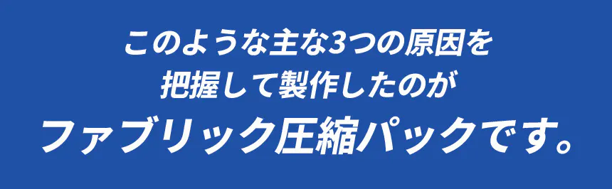 圧縮パックのメーカーや専門家は、原因は大きく3つだと言っています。