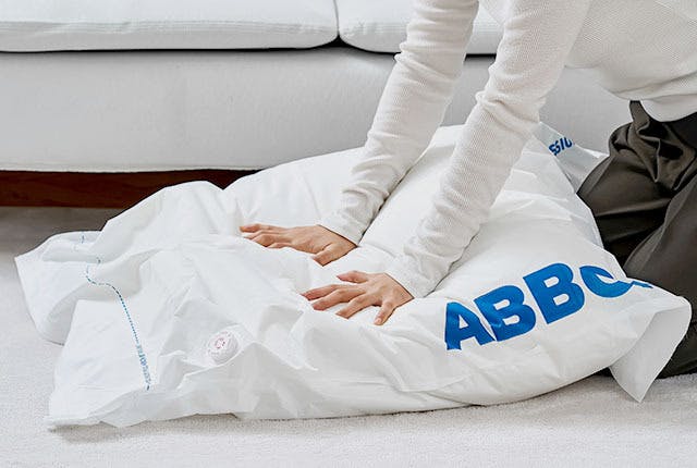 ABBOXはこのような不良に関する意見を聞き、新しい素材で新しい製品の開発をしていました。 そんな中、ファブリックの生地をビニールに貼り付けて使う方法を研究し、新しいファブリック圧縮パックを製作することになりました。