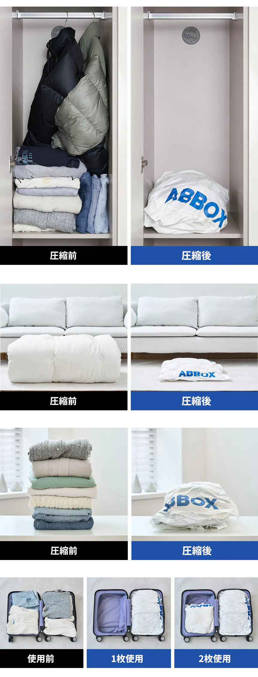 そして、旅行の前後に購入した衣類や別に保管しなければならない着ていた衣類があれば、2枚に分けて圧縮して使ってみてください。 本当に便利です。