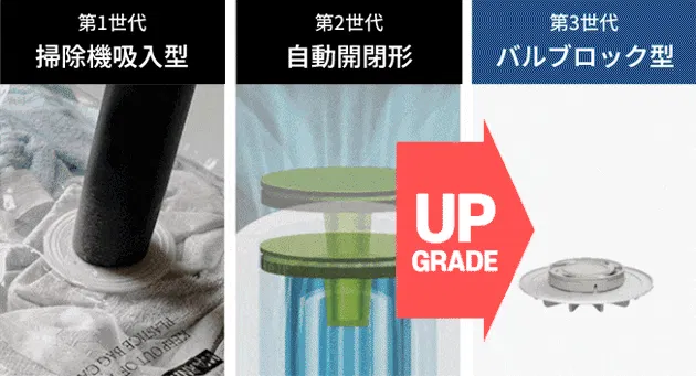 3世代 - 掃除機または手で圧縮した後、ロックバルブでもう一度空気遮断