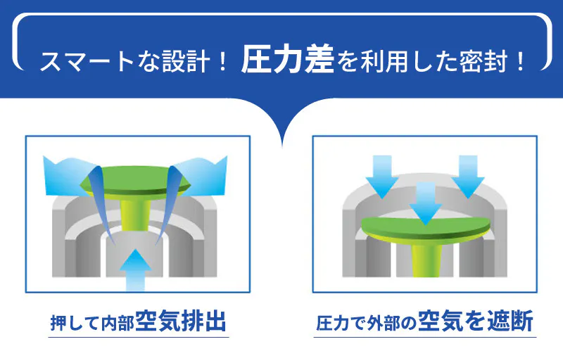 内部の空気は排出! 外部からの空気の流入は遮断!