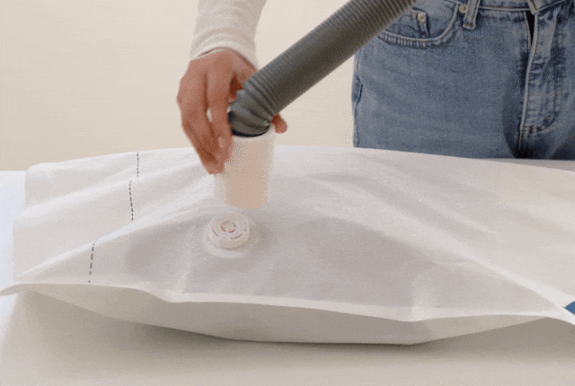 STEP 02. バルブを左に回して開き、真空掃除機や手動ポンプで内部の空気を抜き取ります。