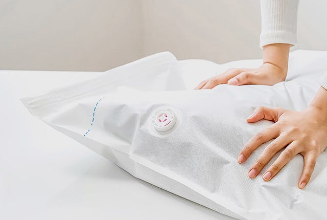 パック外部に第三世代機能性圧縮バルブを付け加えて機器で押すか、手でも圧縮します。逆流防止機能を搭載し、圧縮パックの中には保管品だけが残ります。 完全に密封して体積が大きいだけに、悩みが大きかった物も一気に面積を減らしてみてください。
