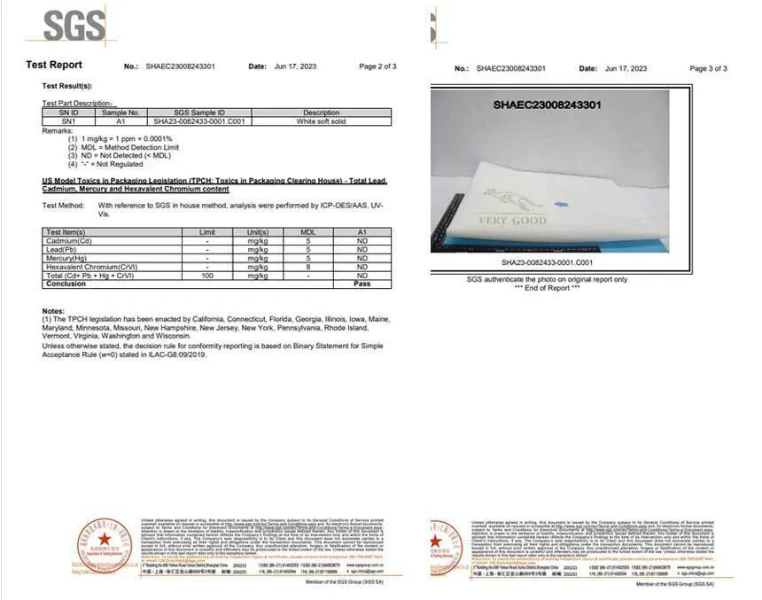 4つの化学物質のテストを行いました。 カドミウム(Cd)、鉛(Pb)、水銀(Hg)、六価クロム(CrVI)、銃(Cd+Pb+Hg+CrVI)の4つの成分が安全基準をクリアしました。