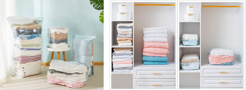 圧縮パックをワードローブや収納の引き出しに使用すると、引き出しの角や古いワードローブの木くずによる圧縮パックが破損して使い捨てになってしまうこともあります。
