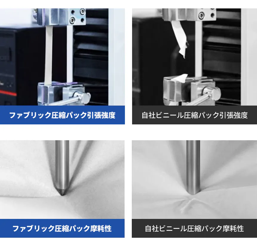 移動や重ね置きが必要な圧縮パックは、耐久性を慎重に考慮する必要があります。ファブリック圧縮パックはファブリック素材とビニール素材で製作し、何度も圧縮を繰り返してもシワによる破損がありません。