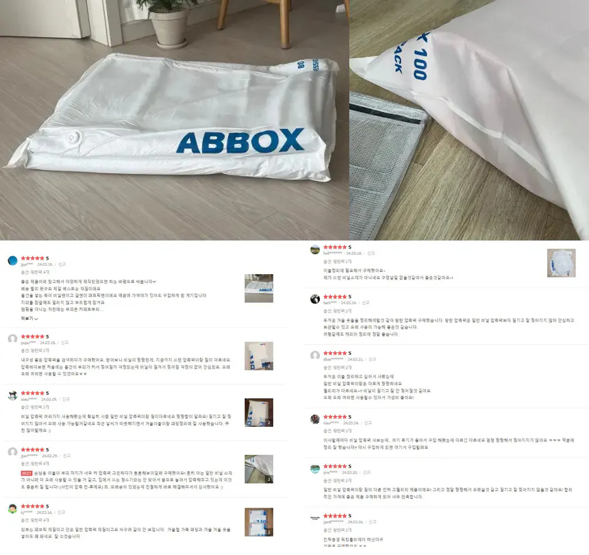 韓国で先行販売を2023年12月から2023年月まで販売し、現在(2024年3月1日)まで生地によって不良はない圧縮パックで韓国TVホームショッピングで販売しています。