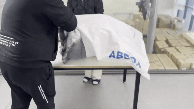 ABBOXはこのような不良に関する意見を聞き、新しい素材で新しい製品の開発をしていました。 そんな中、ファブリックの生地をビニールに貼り付けて使う方法を研究し、新しいファブリック圧縮パックを製作することになりました。