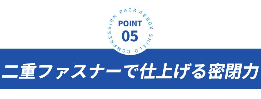 鉤型の強力な接地力の二重スライドファスナーで密閉力を維持し圧縮された状態で長期間保管が可能です。