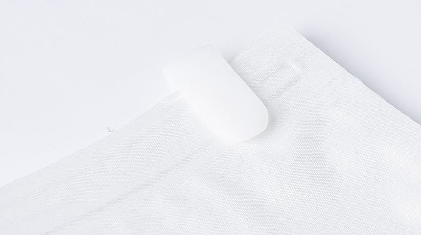丸い形で製作したバルブは二重密封して空気が染み込むことを遮断します。パックの外にレールクリップを取り付け、丁寧に密封します。 バルブで空気を遮断し、レールクリップでもう一度塞いで一気に体積が減ります。
