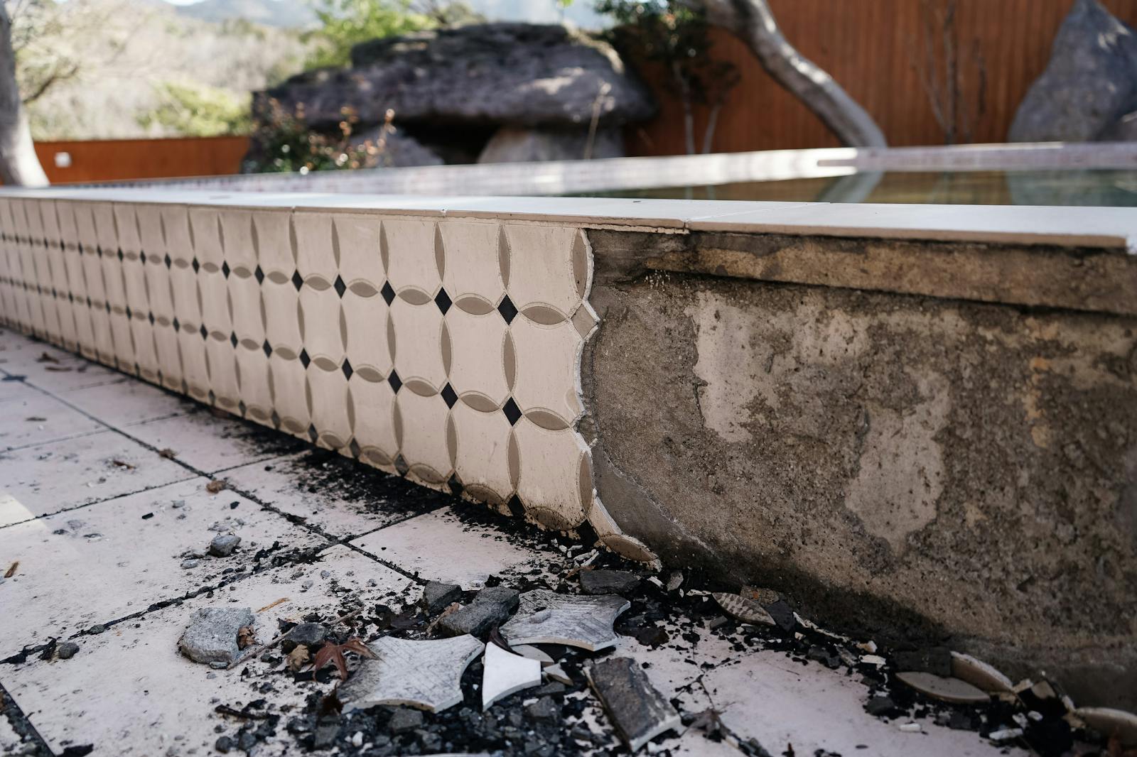 ・破損した露天風呂のタイルの修繕 (うち火災保険対象外部分)
