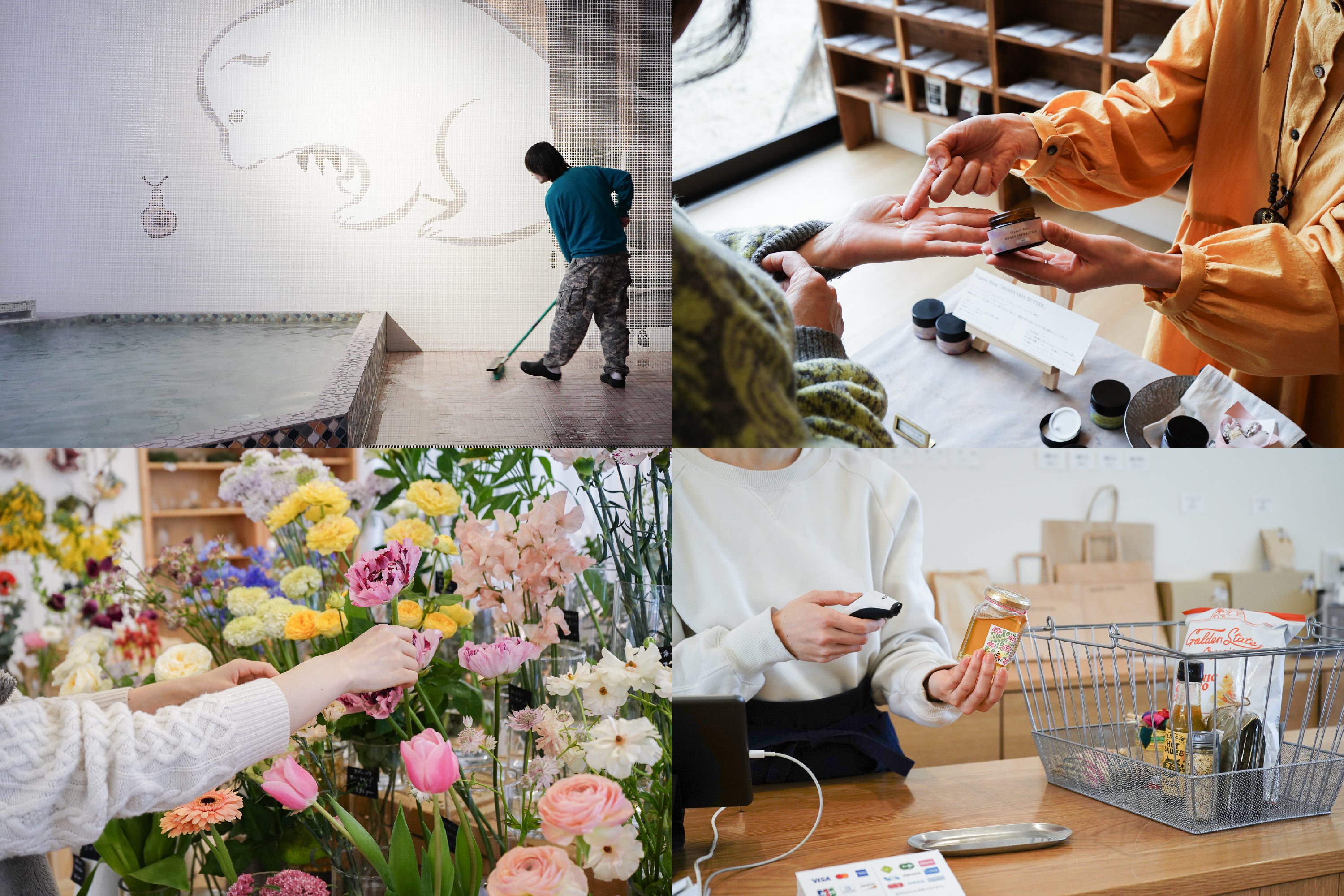 大浴場・セレクトショップ・フラワーショップ・マルシェの風景