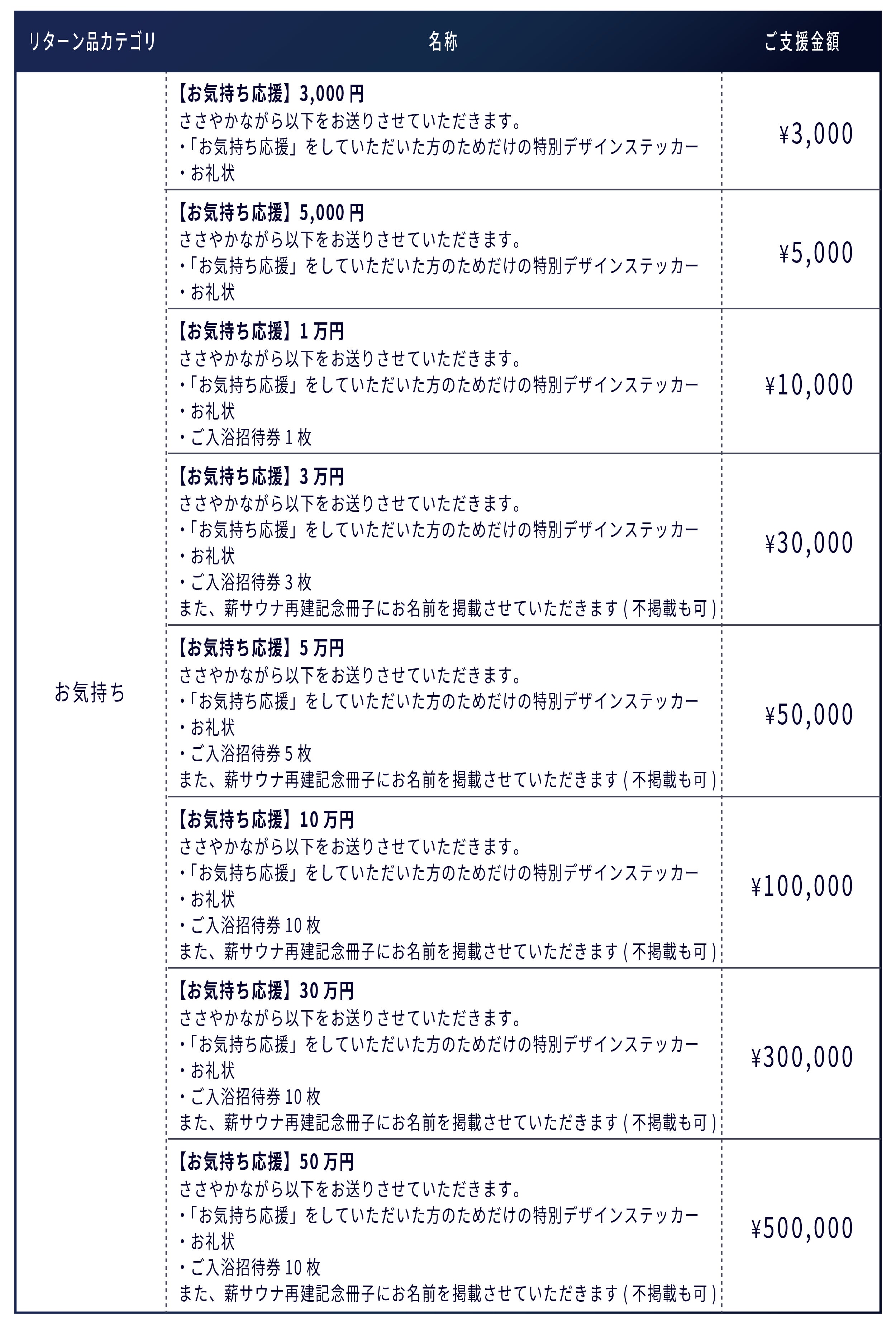 またリターンの発送も12月頃のリニューアルオープン前を予定しております。
