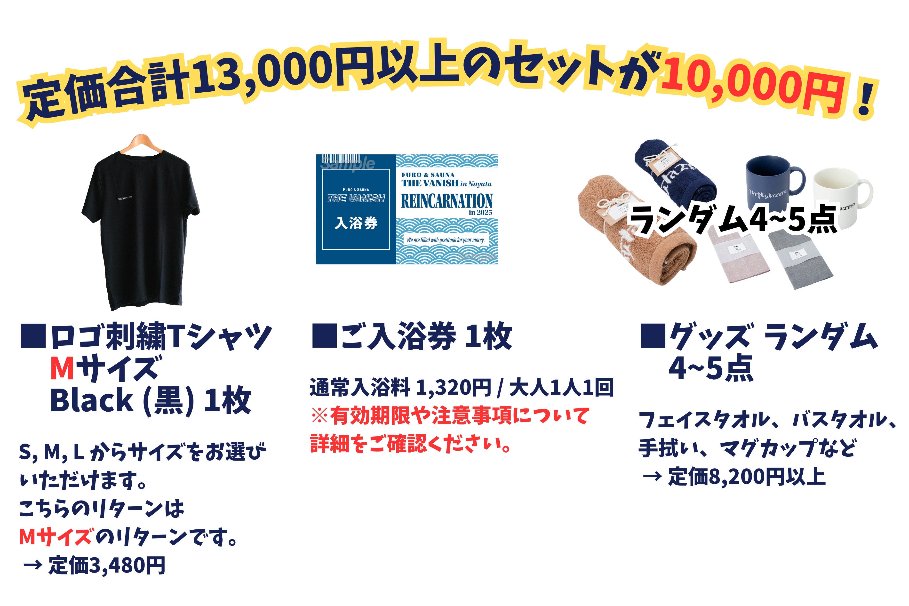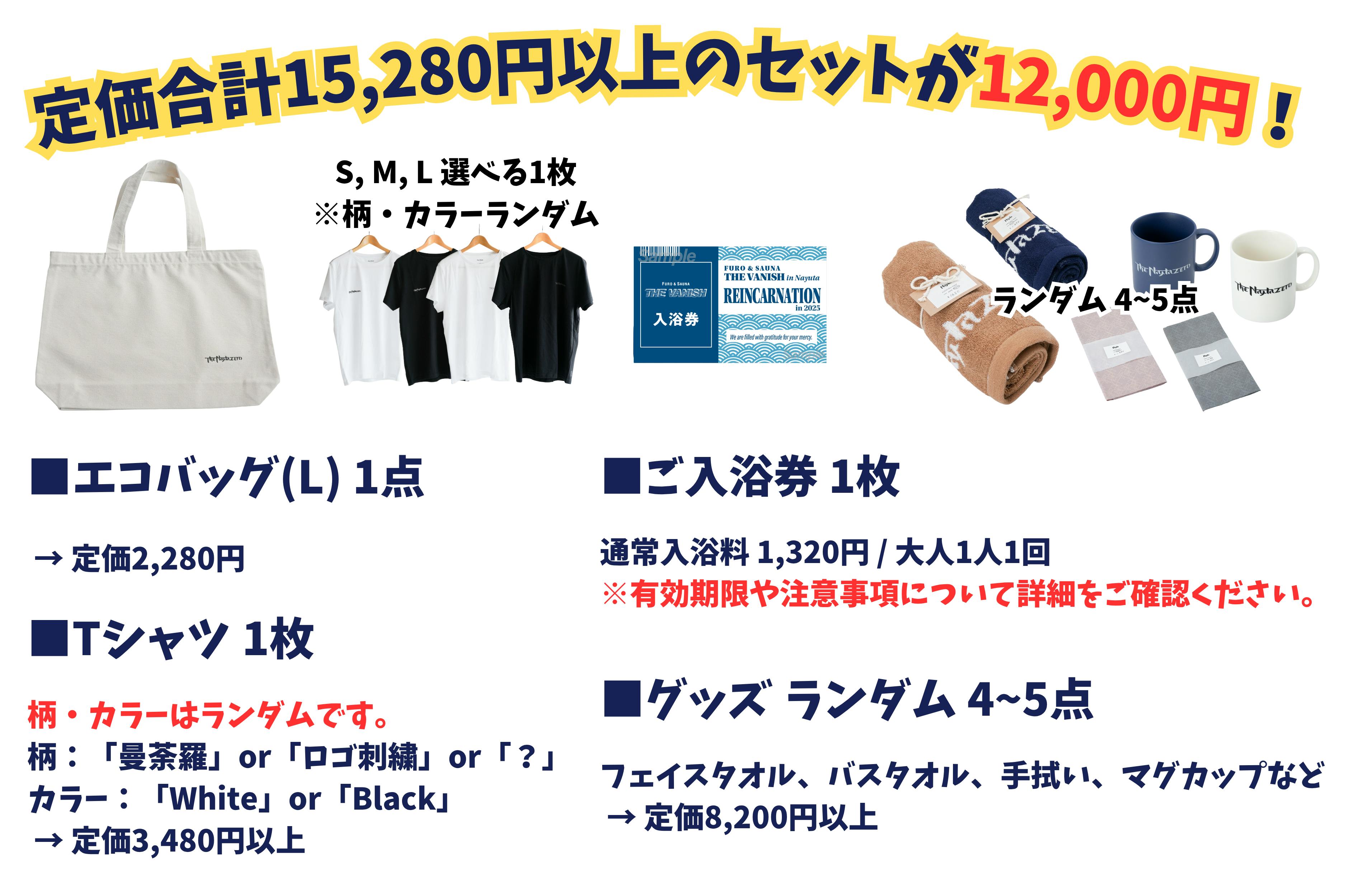 サイズが選べるTシャツ・エコバッグ(L)入り!Nayutaグッズ詰め合わせ&ご入浴券セット