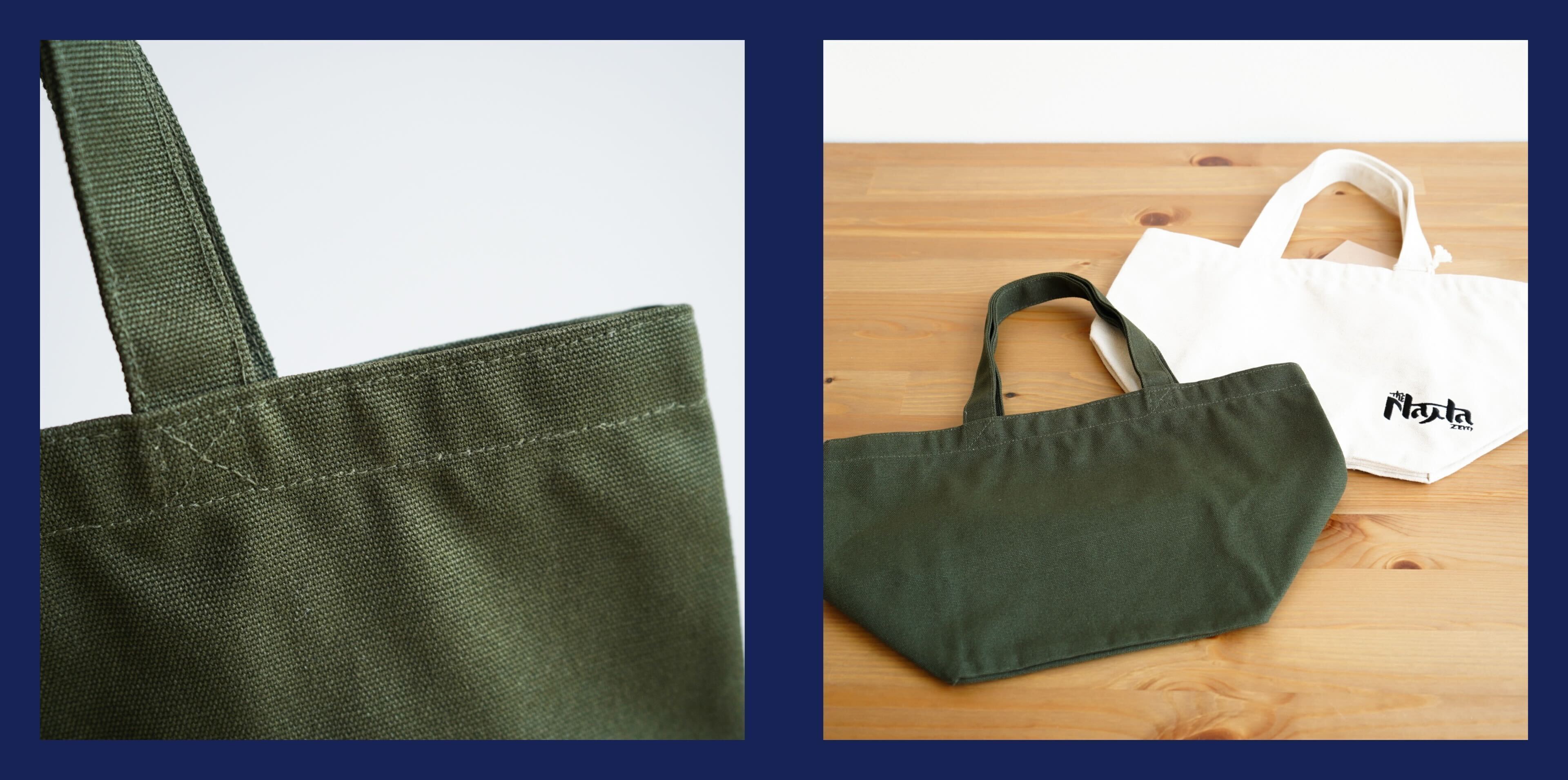 この度リターンとしてご用意させていただくエコバッグには、Nayutaオリジナルグッズとして展開しているエコバッグのSサイズと同じ、キャンバス生地のベースを使用いたします。
