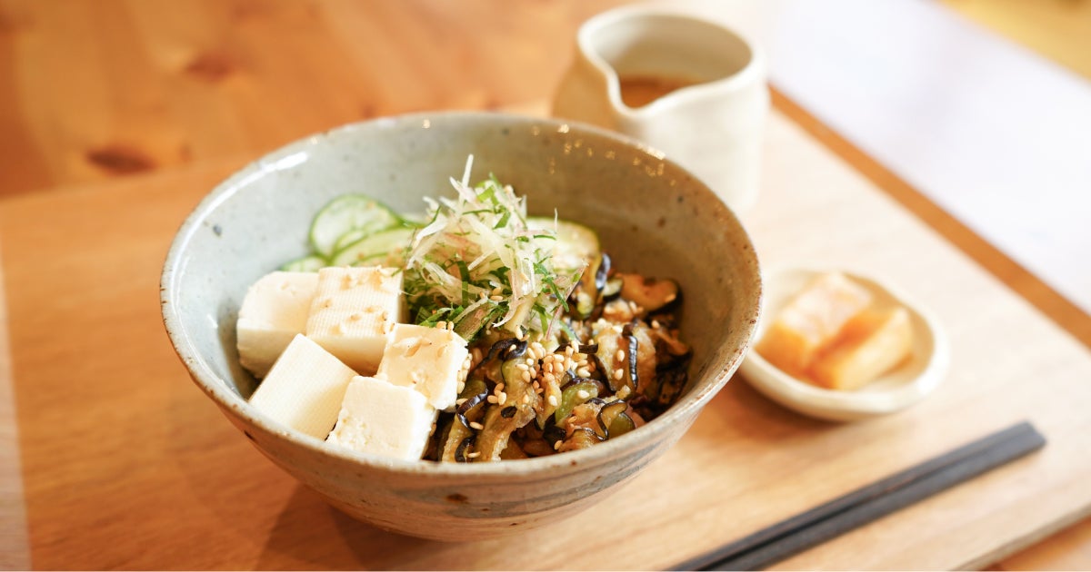 - 玄米・豆腐・きゅうり・なす・大葉・みょうが・生姜・ごま・味噌・醤油・粗塩・七味・自家製精進出汁汁