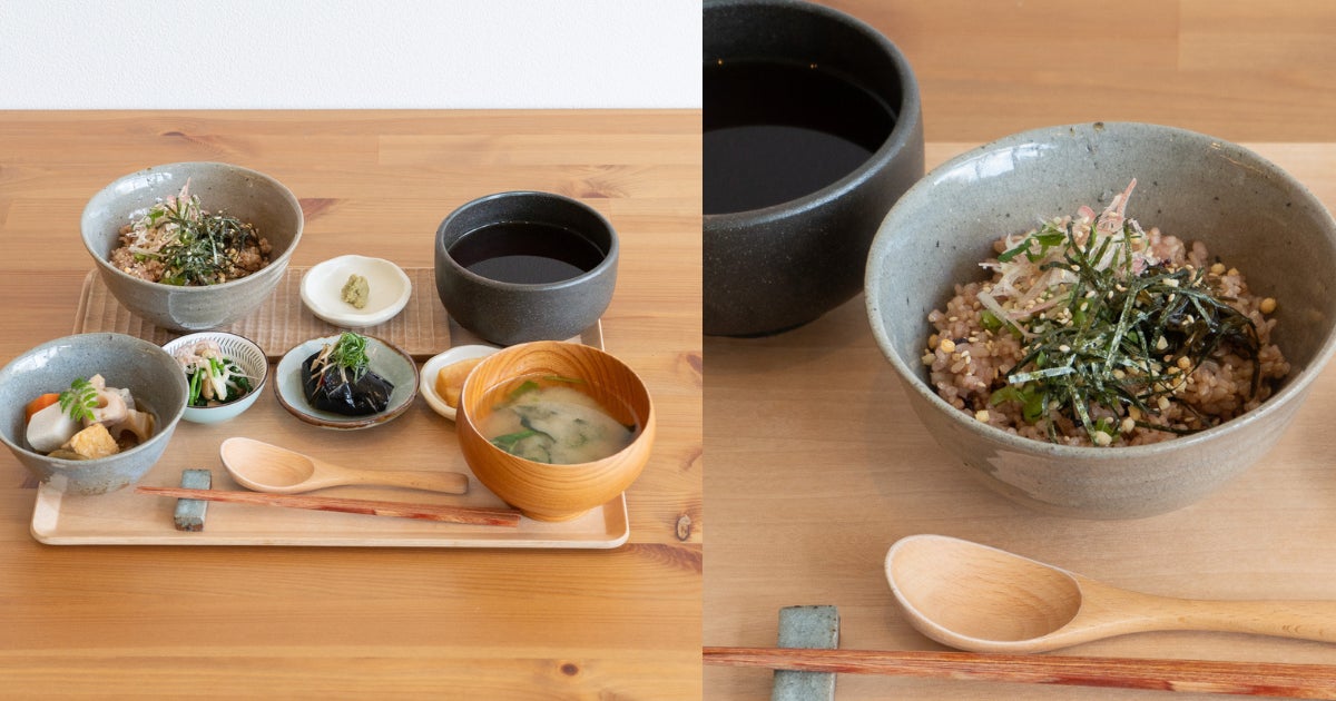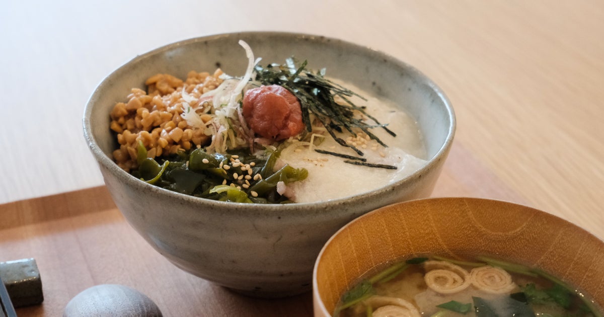 - 玄米・梅干し・納豆・めかぶ・山芋・大葉・みょうが・生姜・ごま・海苔・醤油・粗塩・七味