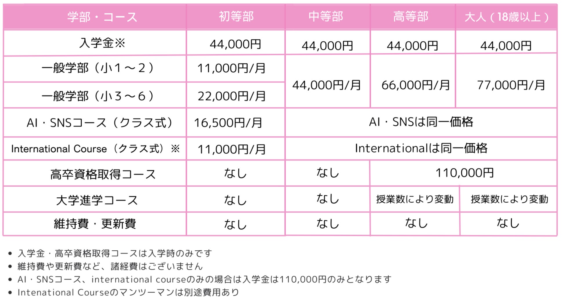 ・他の通信制学校にはない、AI・SNSスクール、英会話スクールとの提携