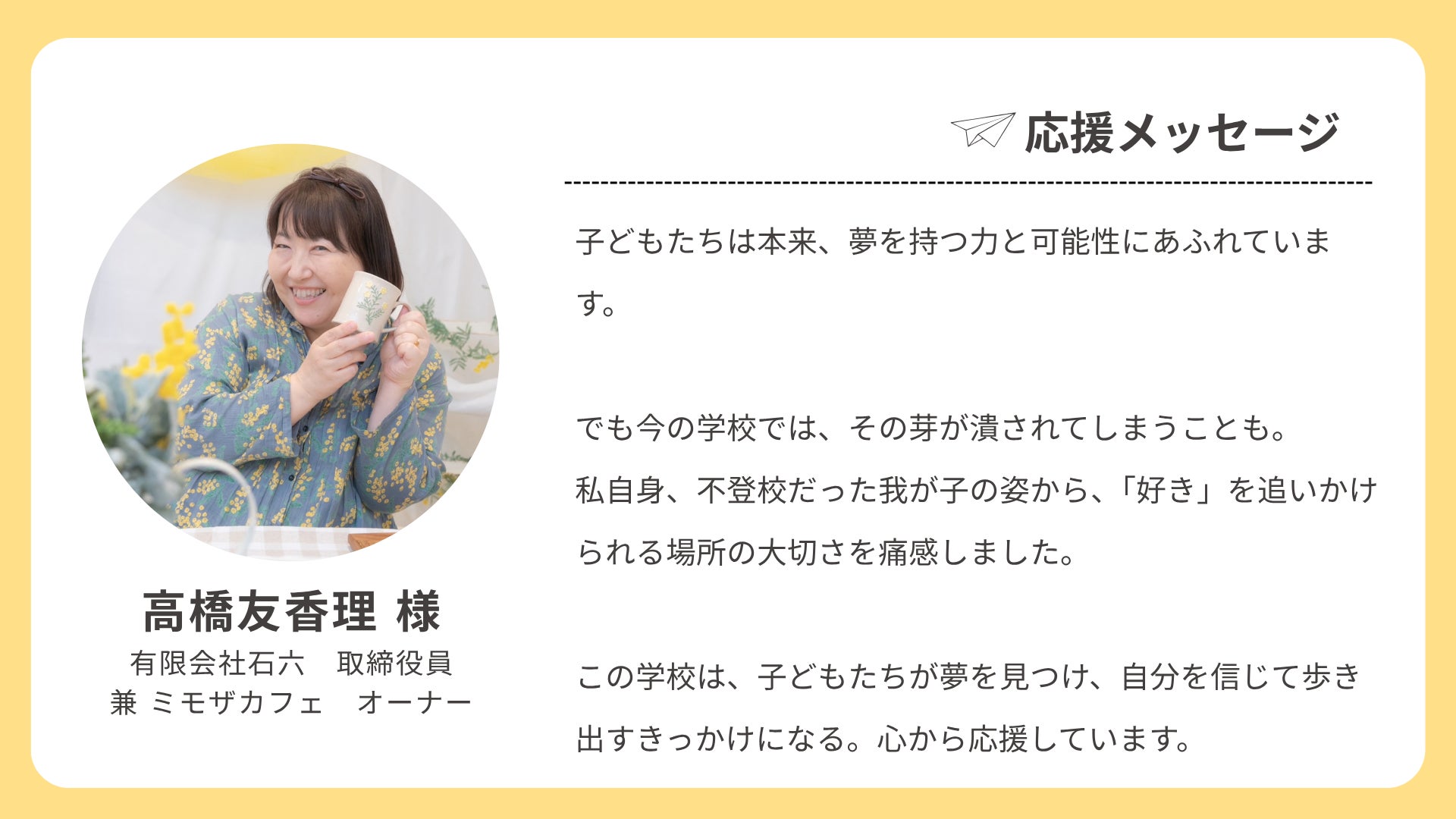 インターナショナルスクールを開校しようと思った経緯はプロジェクトページに綴っていますが、とても強い想いをもっております。
