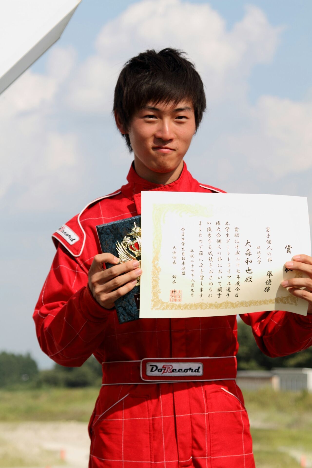 2013年、先輩もいる中、僭越ながら2年生から代表選手3人のうちの1人に選んでいただき、ジムカーナ・ダートトライアル・フィギュア(競技名)の学生大会に出場。
