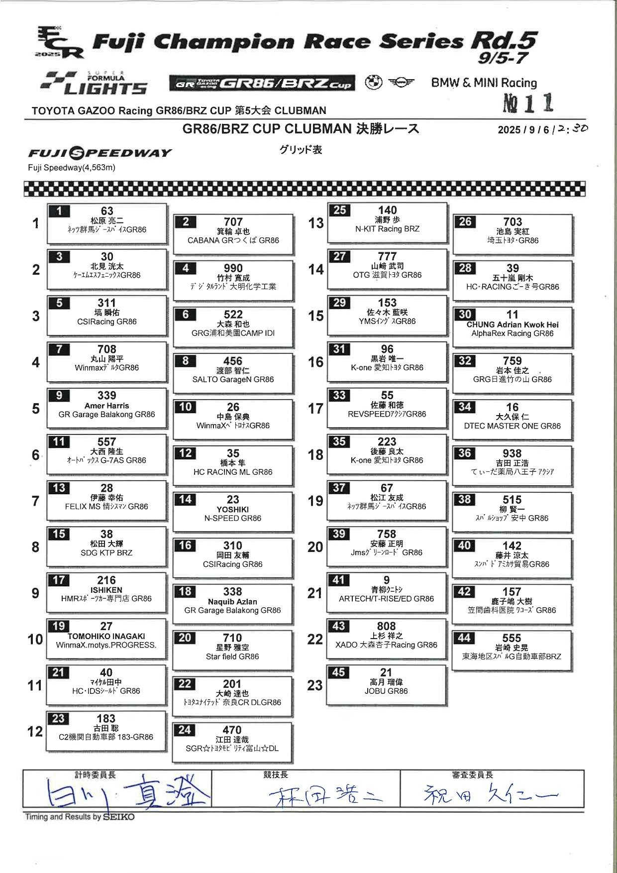 第5戦 富士スピードウェイ、木曜日から練習走行を重ねており、本日予選が行われました!