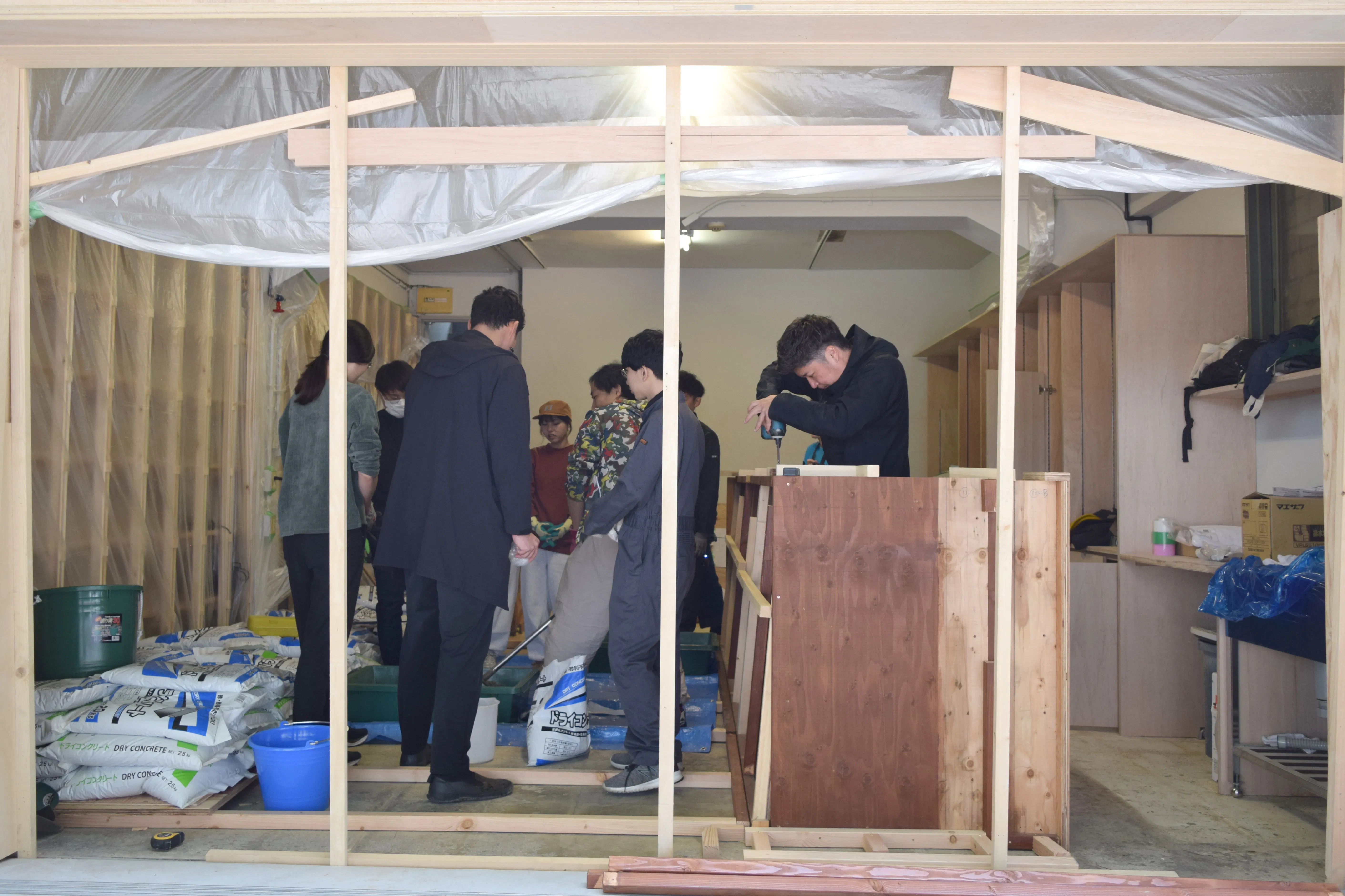 暖房必須の季節だけど、大きい穴があいたままでイベントを開催。