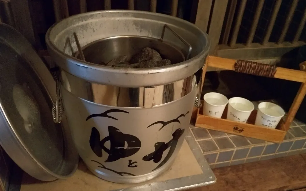 熱波サービスを行っているサウナ室は、昔ながらの遠赤外線ストーブ。水をかけることはできません。