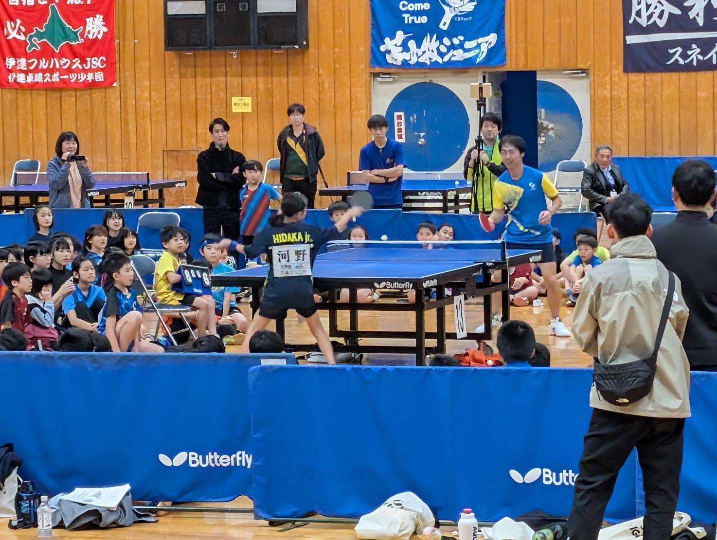 私も全国ホープス卓球後援会が主催する会長杯の講習会の部の講師として2回参加させていただいています。一つの大会の中で、講習会と試合を組み合わせた大会は珍しいものです。トップ選手となかなか触れ合う機会のない子どもたちは、目をキラキラさせながらトップ選手のプレーを見たり、指導を受けたりしていました。また講習会後の大会は、予選リーグから順位別トーナメントがあり、普段の大会よりたくさん試合をすることができます。子どもたちは試合だけではなく、いろいろな地域の選手と親しくなりとても楽しそうでした。