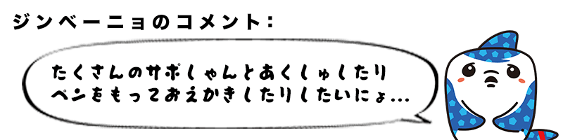 しかし、活動を通じて多くのサポーターの声を直接聞く中で、ジンベーニョ自身から「もっとたくさんのサポしゃんと"ちょくせつ"こうりゅうがしたいにょ・・・」との想いが寄せられました。